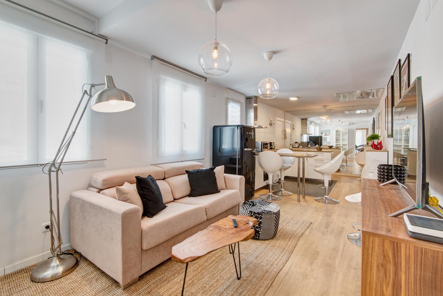 La vivienda es ideal para profesionales o parejas que quieran vivir en una de las mejores zonas de Madrid y deseen disfrutar de un piso totalmente equipado y muy bien comunicado con el centro, M-30, y estación de Atocha. Al entrar encontramos un amplio y luminoso espacio abierto con cocina americana totalmente equipada, abierta hacia la confortable zona de estar.