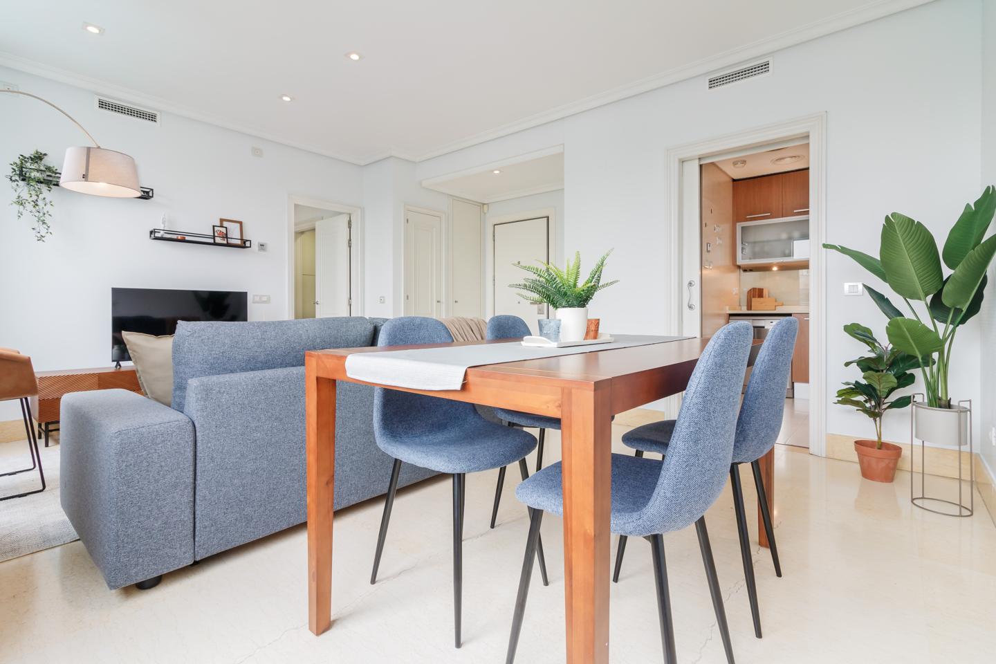 Sumérgete en el lujo en una de las urbanizaciones más exclusivas de la zona. Con dos impresionantes piscinas, una para cada estación, las podrás disfrutar todo el año. Los jardines cuidados y el gimnasio bien equipado te brindan el espacio perfecto para relajarte y mantener un estilo de vida activo. Además, este apartamento se completa con una plaza de garaje y trastero para tu conveniencia.