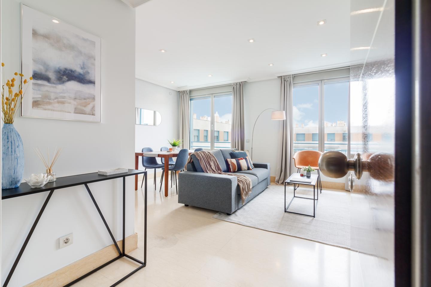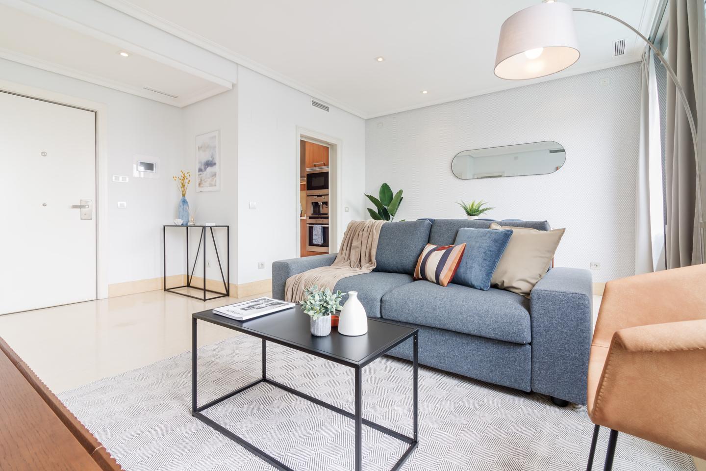 Situado en la sexta planta, este apartamento de alta gama ofrece lo último en comodidades y tecnología. Con características de domótica integradas, disfrutarás del control total sobre tu entorno. Las calidades superiores se reflejan en cada detalle, desde los acabados elegantes hasta los electrodomésticos de última generación. Totalmente amueblado y equipado, este apartamento cuenta con un amplio salón comedor, cocina moderna, cuarto de lavandería, dormitorio con vestidor y un cómodo baño.