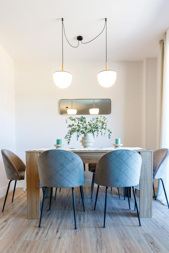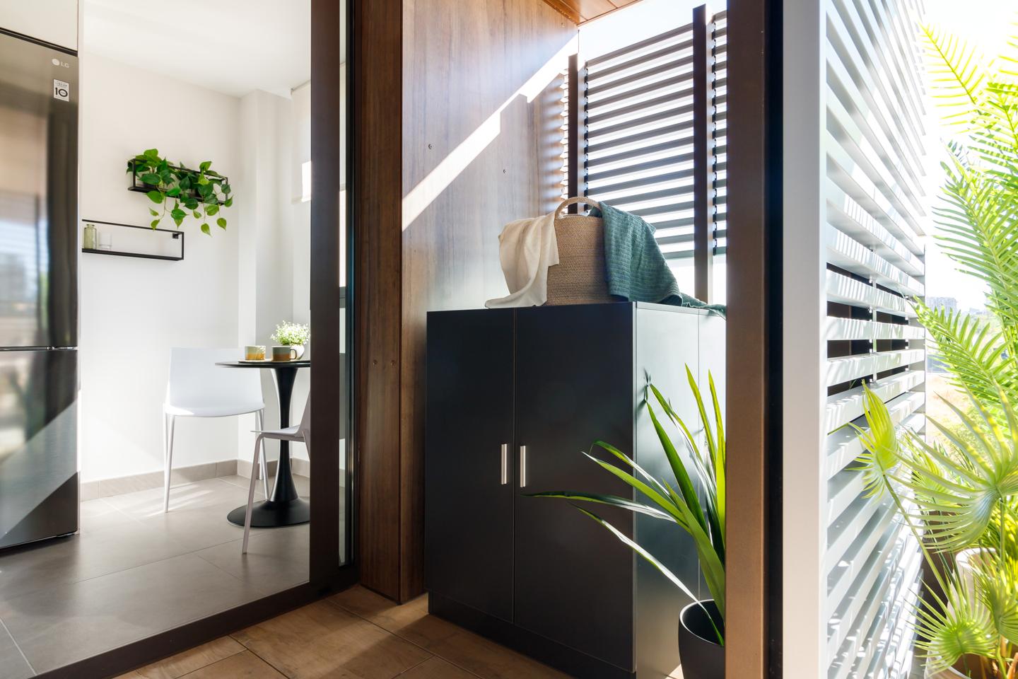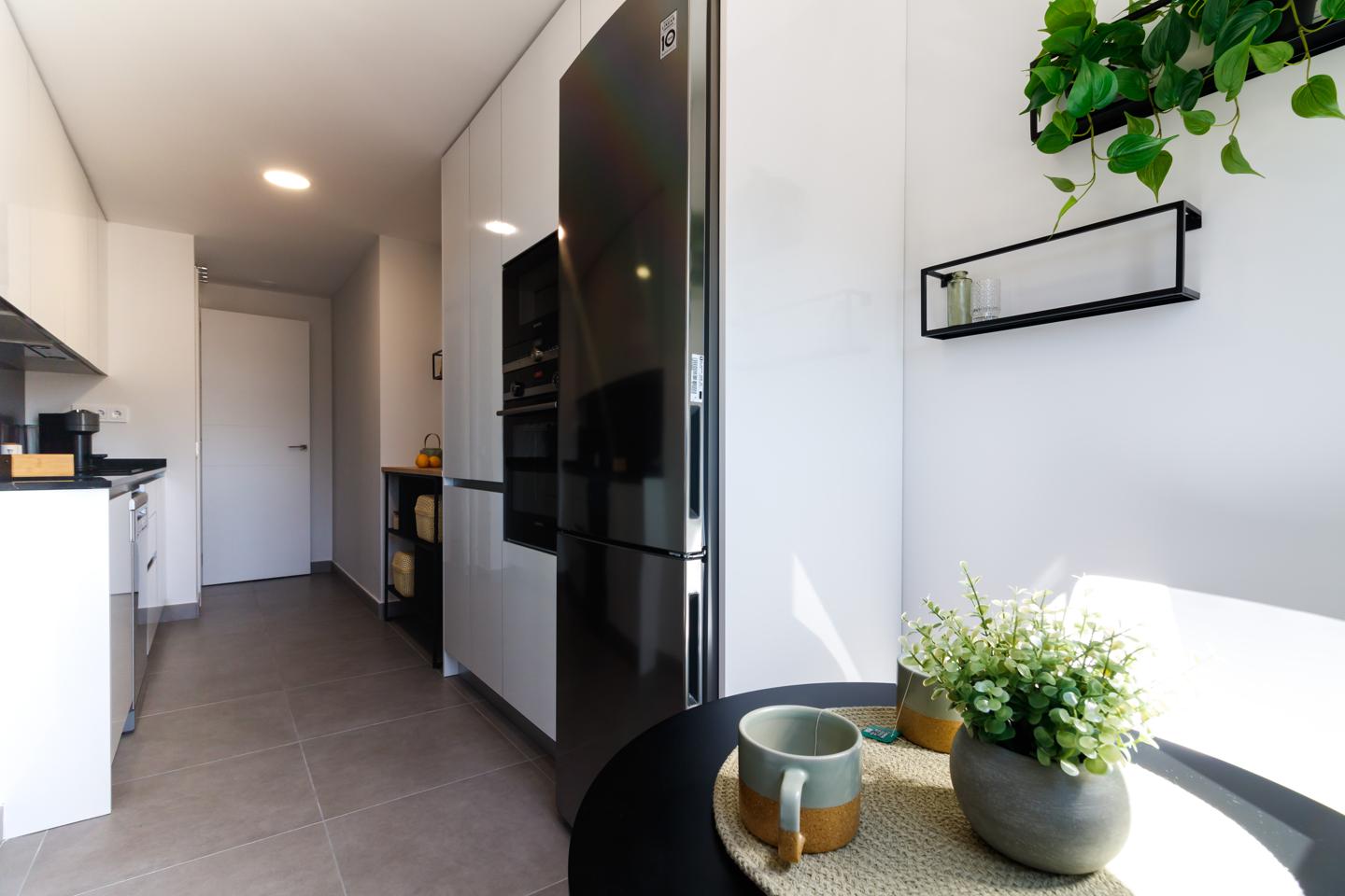 La vivienda tiene 134 m2 construidos, repartidos en distribuidor con armario para abrigos, amplio salón comedor con gran ventanal orientado al este (sol directo por la mañana) y terraza cubierta con ambiente relax y tendedero. La cocina viene totalmente amueblada y equipada con electrodomésticos de primeras marcas y además dispone de una mesa para que 2 personas puedan comer cómodamente. De los 3 dormitorios, 2 son medianos y cuentan con cama de 1.05 m x 2 m, escritorio y armarios empotrados, mientras que el principal cuenta con cama de 1.6 m x 2 m y vestidor en esquina. El baño que comparten las 2 habitaciones medianas cuenta con bañera, mientras que el principal ( en suite ) dispone de una ducha de gran tamaño y doble lavabo.