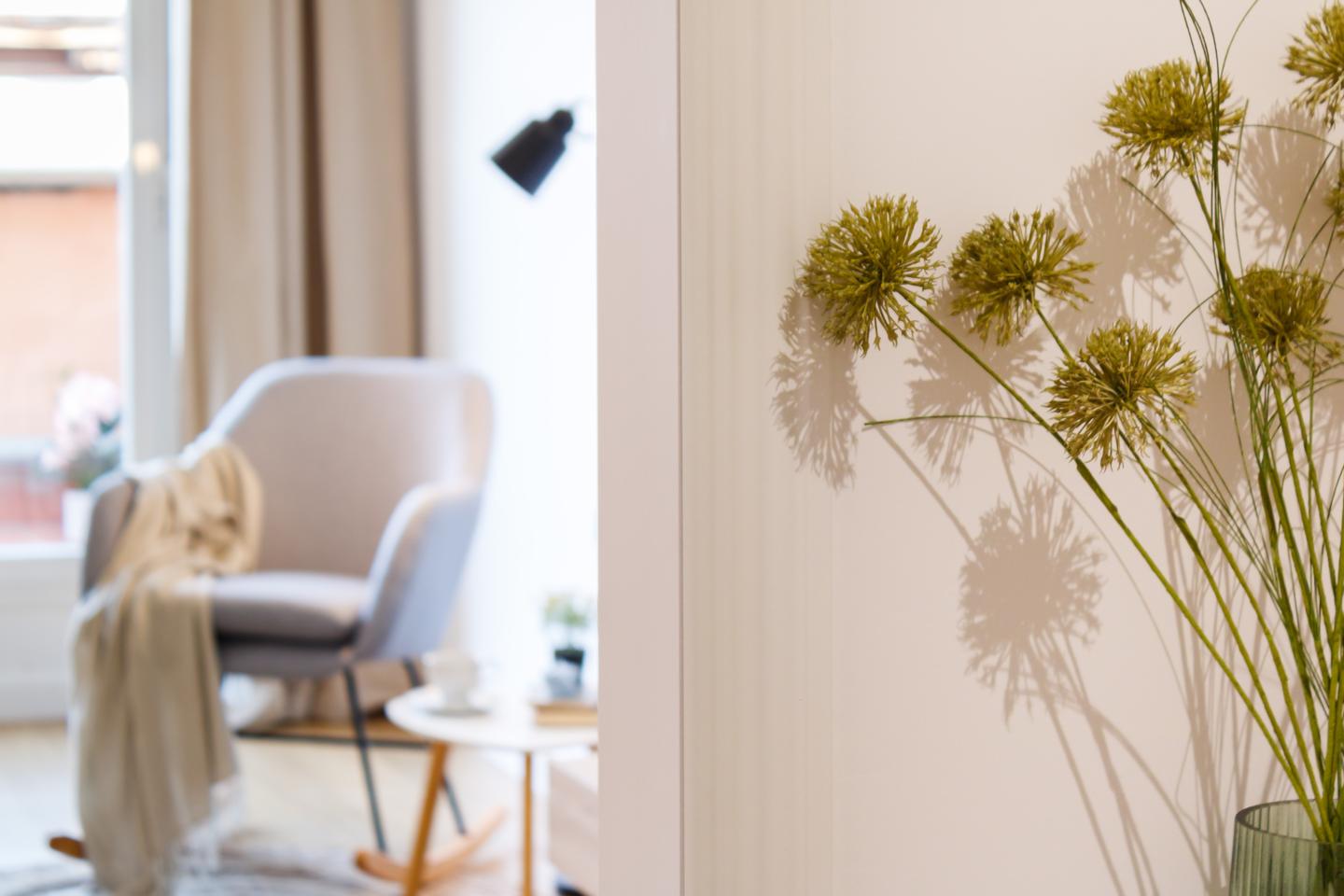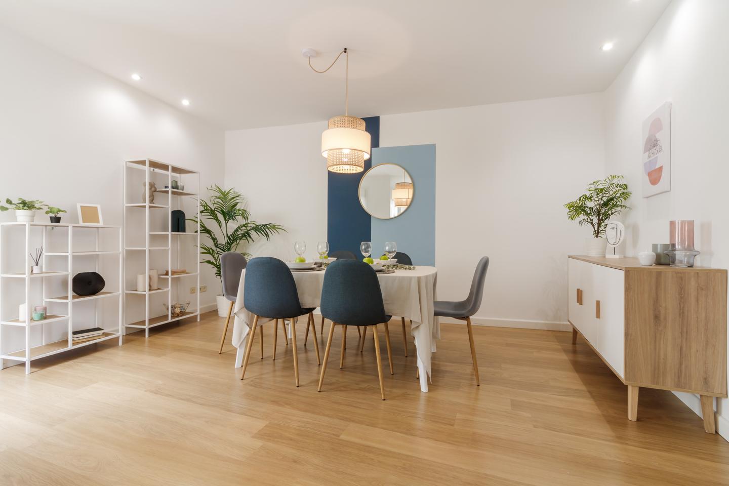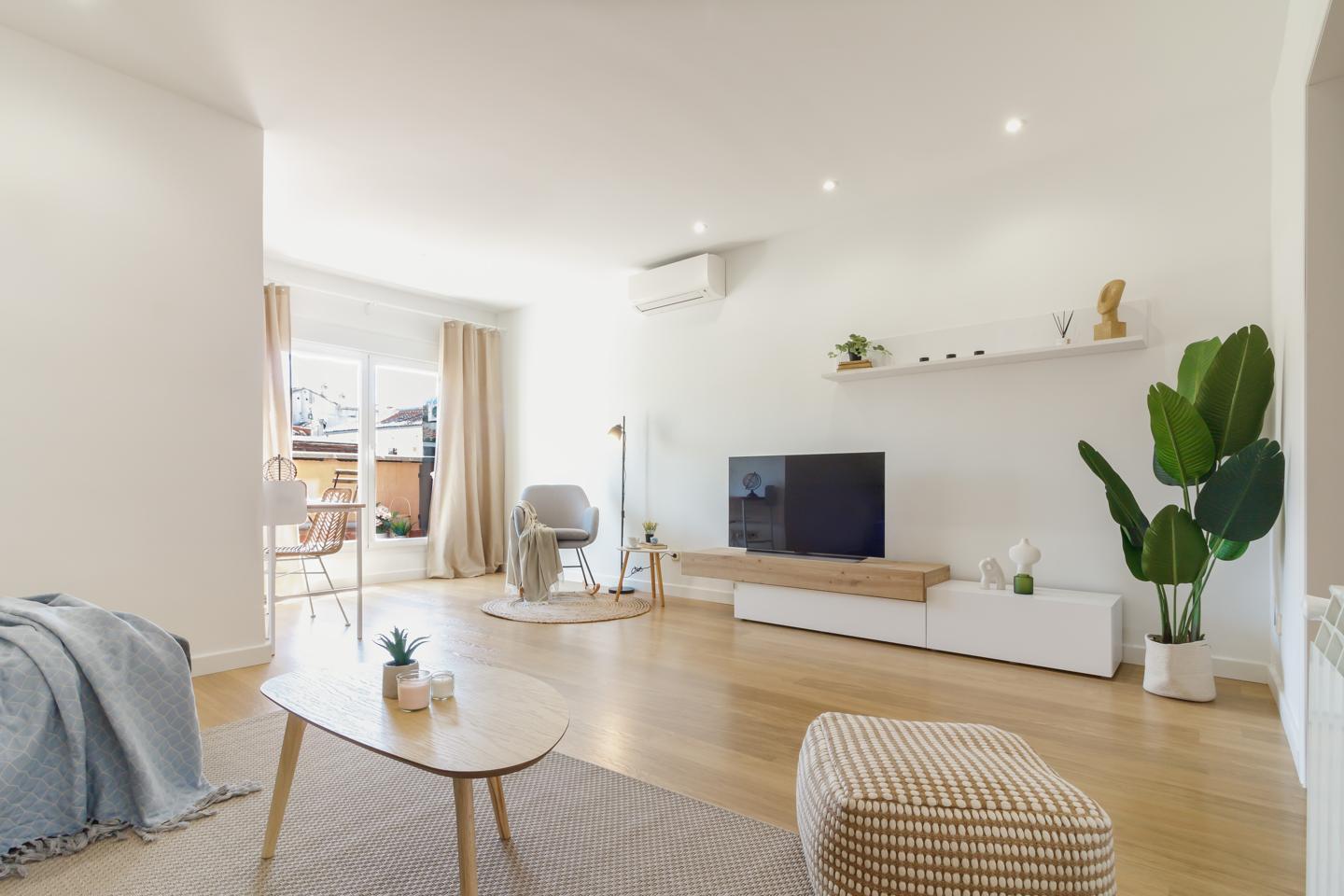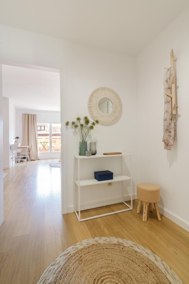 Protagoniza el inmueble un amplio salón muy luminoso: cuenta sofá cama, zona de TV, rincón con escritorio ( ideal para el teletrabajo ) y acceso directo a la terracita, con vistas a algunos de los edificios más emblemáticos del centro. Un distribuidor une el salón con la amplia cocina ( totalmente equipada ) que es a la vez un espacioso comedor. Completan la vivienda el dormitorio doble com armario empotrado y el baño. El ático dispone tanto de calefacción individual de gas como de aire acondicionado. Ademas, el edificio cuenta com portero físico de confianza.