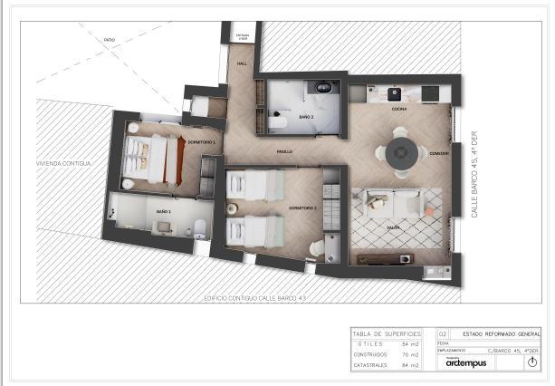 Dispone de 74 m2 construidos (57 m2 útiles) este encantador piso, recientemente reformado, cuenta con dos habitaciones y dos baños, uno de ellos en suite, ofreciendo un espacio cómodo y funcional. El salón y la cocina se presentan como áreas integradas, creando un ambiente abierto y acogedor. La cuidadosa decoración destaca con acabados de madera natural que añaden calidez y elegancia al espacio. El juego de luces de diferentes ambientes proporciona una atmósfera versátil, ideal para adaptarse a tus necesidades.