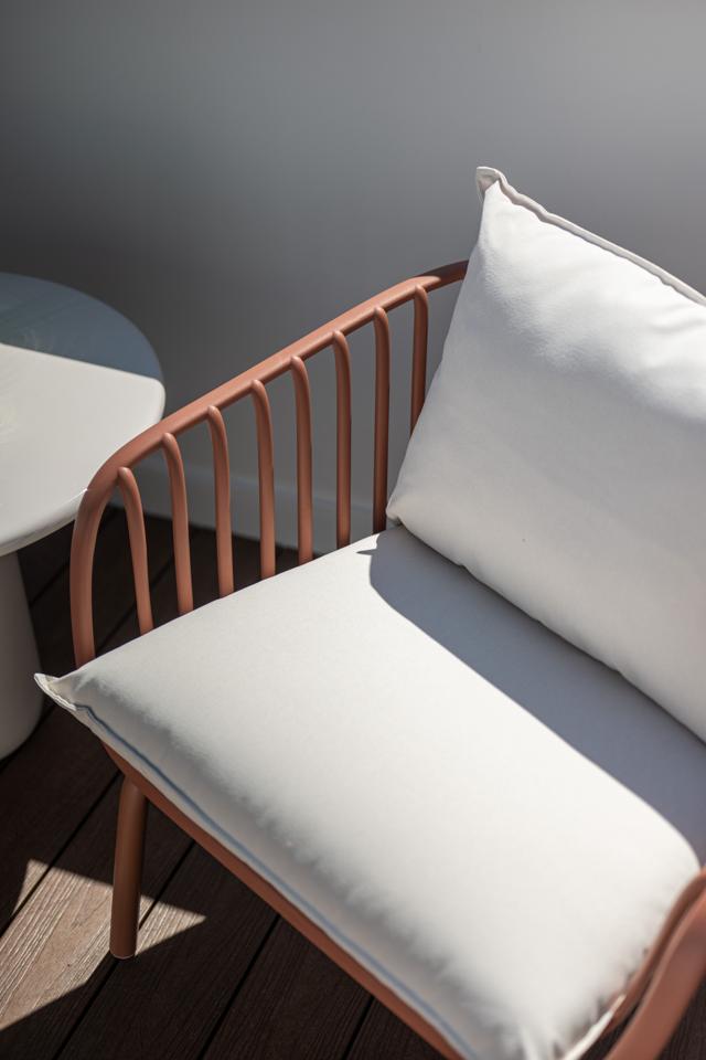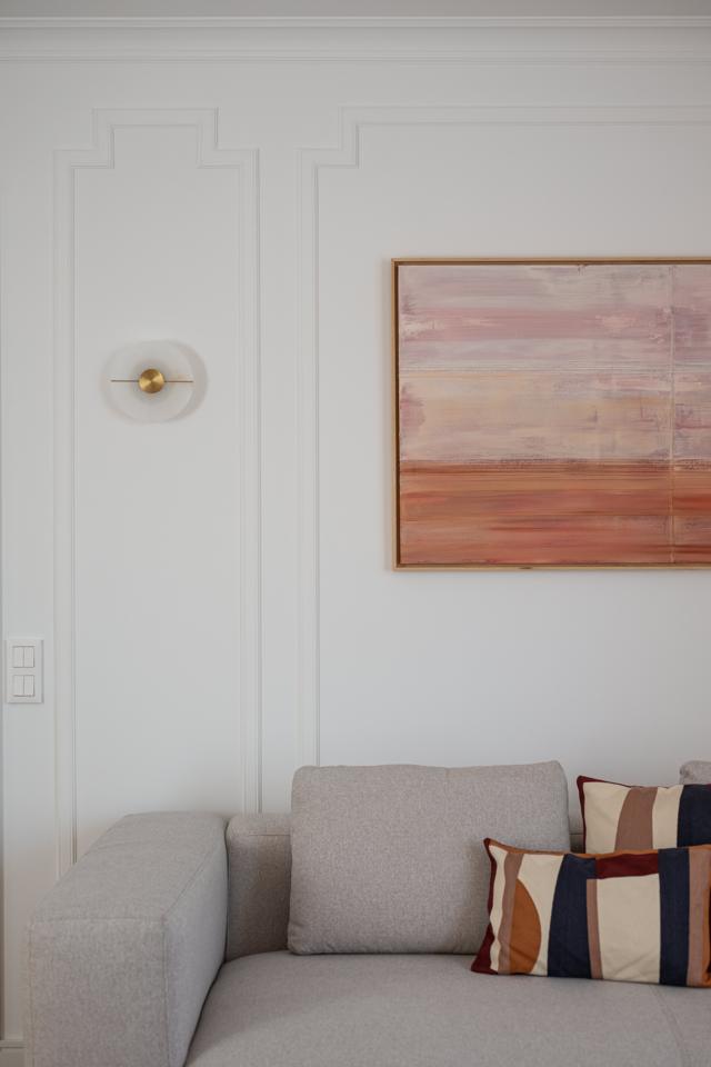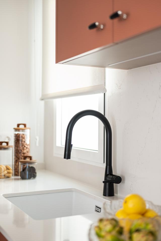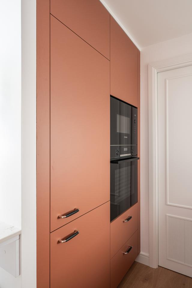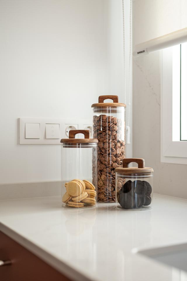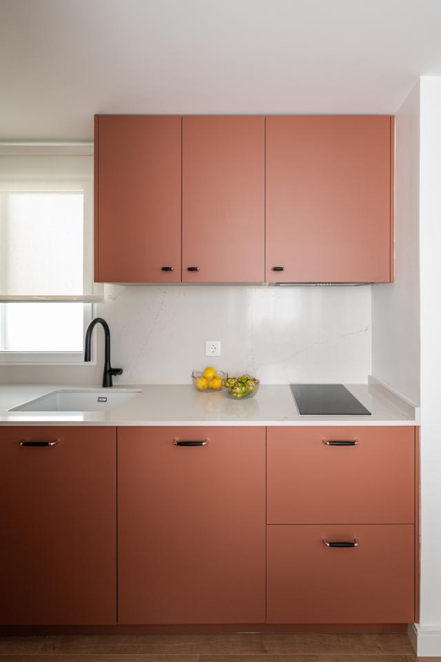 Dispone de un amplio salón muy luminoso, con salida directa a la terraza, y una cocina totalmente integrada, con mesa alta bañada por luz natural, armario gabanero, armario de ropa blanca y doble zona de cocina completamente equipada. Un distribuidor con doble armario (escobero y despensa) da acceso al dormitorio y al baño. El dormitorio, de grandes dimensiones, cuenta con seis hojas de armarios a medida, con diferentes secciones, acabados en lino e iluminación LED interior.