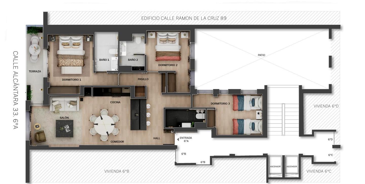 En una de las calles más tranquilas y mejor conectadas de Lista, te presentamos esta exclusiva vivienda de 122 m² catastrales, situada en la 6ª planta exterior de una finca de 1965 con ascensor y plaza de garaje. Un hogar completamente transformado por ArcTempus, donde el diseño contemporáneo, la luz y la funcionalidad se encuentran en equilibrio perfecto.