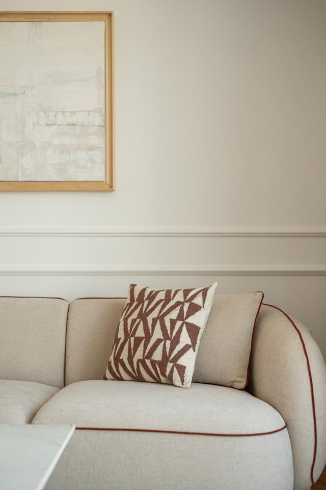 Con una superficie de 126 m2 en planta, incluyendo una terraza de 20 m2, esta vivienda se compone de un amplio hall de entrada con armario empotrado para abrigos, que desemboca en un distribuidor transformado en una galería con molduras clásicas y diseño de leds en el techo, ideal para exhibir obras de arte.