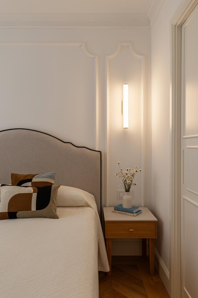 Completando la vivienda se encuentran dos elegantes dormitorios dobles (el principal con vestidores), con armarios empotrados vestidos en lino e iluminados en sus interiores, y dos lujosos baños, uno de ellos en suite, equipados con grifería, sanitarios y alicatados de PORCELANOSA. Este ático ofrece comodidades modernas, como radiadores de acero, detalles clásicos en cada estancia, aire acondicionado de alta eficiencia con tecnología INVERTER y ventanas de aluminio CORTIZO con persianas motorizadas y manilla oculta. Los suelos cortados en estilo de Punta Hungría, de madera de roble natural, añaden un toque de calidez y elegancia a los espacios sociales y dormitorios.
