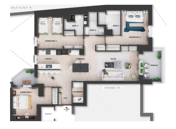 En el consolidado barrio de Ibiza, junto al Parque del Retiro, presentamos esta vivienda situada en Menéndez Pelayo 3. Una propiedad de 187 m² catastrales, ubicada en una segunda planta, que combina amplitud, funcionalidad y una ubicación privilegiada en una de las zonas más demandadas de Madrid.